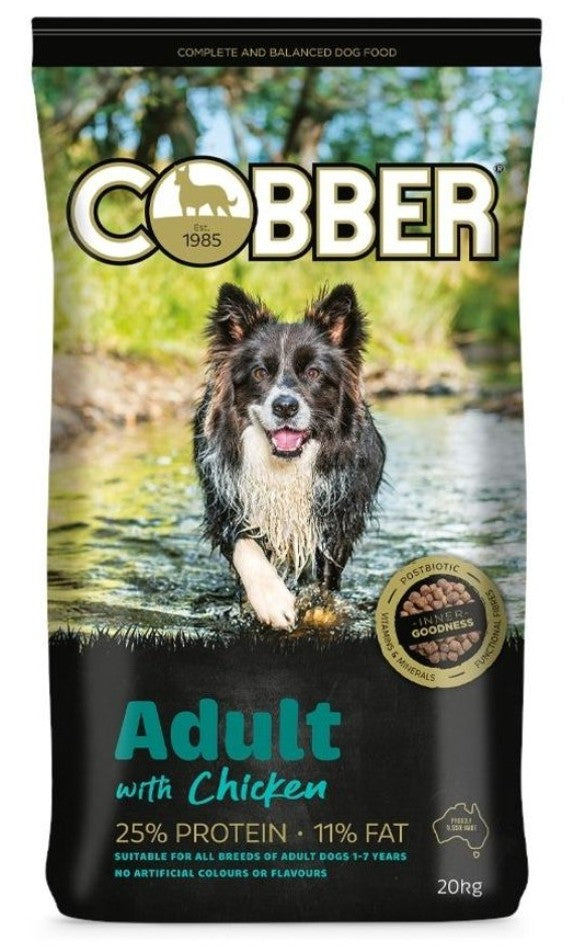 Cobber Adult Chicken 20kg is expertly formulated for all breeds of adult dogs aged 1 to 7 years.